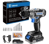Аккумуляторная дрель-шуруповерт DEKO DKCD20V ONE + предназначена для сверления отверстий в различных материалах (при установке соответствующих сверл для каждого вида работ), а также для монтажа/демонтажа резьбовых соединений (при установке соответствующих бит и головок). Технические характеристики: Макс. диаметр сверления (дерево/металл): 25/10 мм Тип патрона: быстрозажимной Размер зажимаемой оснастки: 1-10 мм Число оборотов: 0-350/0-1350 об/мин Комплектация: 1 шт дрель-шуруповерт аккумуляторная 2 шт аккумулятор 1 шт зарядное устройство 6 шт сверла 6 шт биты 1 шт магнитный держатель бит 50 шт комплект крепежа 1 шт руководство по эксплуатации 1 шт кейс