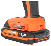 Напряжение аккумулятора, В 14.4. Тип аккумулятора Li-ion. Емкость аккумулятора, А*ч 1,5. Макс. диаметр сверления (металл/бетон/дерево), мм 6/6/18. Количество регулировок крутящего момента 21+1. Диаметр патрона, мм 10. Тип двигателя щеточный. Мягкий крутящий момент, Нм 38. Жесткий крутящий момент, Нм 47. Количество скоростей 2. 1 скорость, об/мин 0-400. 2 скорость, об/мин 0-1400.