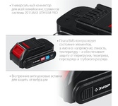 Напряжение: 20. Емкость: 2. Вес: 330. Тип аккумулятора: Li-Ion. Устройство аккумулятора: Слайдер. Назначение: для электроинструмента. Функция быстрой зарядки: ДА. Совместимость: для Зубр DL-20 A5, DB-20 A5, DL-201, DB-201, DB-211, DBS-201, GB-250, GVB-250, GB-500, AB-125. Циклов заряд/разряд: 500. Количество аккумуляторов в комплекте: 1. Габариты упаковки (ед) ДхШхВ: 0.12x0.08x0.06. Вес упаковки (ед): 0.2. Страна производства: Китай. Гарантия: 12 мес.. Назначение: для электроинструмента. Напряжение: 20 В. Вес: 330 грамм. Тип аккумулятора: Li-Ion. Емкость: 2 Ач. Устройство аккумулятора: Слайдер