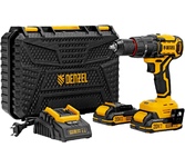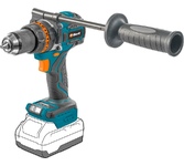 Аккумуляторная ударная дрель-шуруповерт Denzel CIDH-BL-20 26137 с бесщеточным двигателем предназначена для работы с резьбовым крепежом и для получения отверстий диаметром до 35 мм в древесине, до 13 мм в металле и до 8 мм в бетоне. Ударный режим обеспечивает эффективное сверление твердых материалов, таких как кирпич и бетон. Мощный бесщеточный двигатель обеспечивает максимальный крутящий момент 80 Н·м. Патрон совместим со сверлами с хвостовиками 2-13 мм. Инструмент питается от аккумулятора Li-Ion 20 В, оптимален для выполнения бытовых ремонтных и строительных работ. Преимущества Блокировка шпинделя — установка и замена оснастки не занимает много времени. Плавная регулировка — частота ударов меняется в диапазонах 0-7680 и 0-28800 уд/мин, частота вращения шпинделя — в диапазонах 0-480 об/мин для завинчивания крепежа и 0-1800 об/мин для сверления. 21+1 ступень регулировки крутящего момента — можно подобрать оптимальное усилие затяжки крепежа. Аккуратная работа — тормоз свободного выбега мгновенно останавливает в