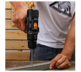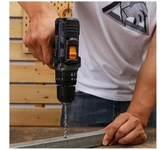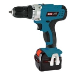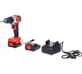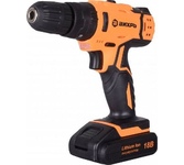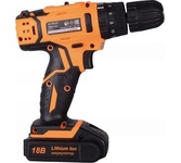 Тип инструмента: Дрель-шуруповерт. Крутящий момент: 40. Количество скоростей: двухскоростной. Число ступеней крутящего момента: 18+1. Тип основного патрона: быстрозажимной. Максимальный диаметр сверления (сталь): 10. Максимальный диаметр сверления (дерево): 20. Тип электропитания: от аккумулятора. Емкость аккумулятора: 1.5. Напряжение аккумулятора: 18. Тип аккумулятора: Li-Ion. Время зарядки, около: 90. Запасной аккумулятор: в комплекте. Жесткий кейс в комплекте: есть. Вес товара: 2.12. Комплект поставки: Дрель-шуруповерт аккумуляторная, аккумуляторная батарея (2 шт.), зарядное устройство, двусторонняя бита, пластиковый кейс, инструкция по эксплуатации, инструкция по безопасности.. Аккумулятор: в комплекте. Зарядное устройство: в комплекте. Количество аккумуляторов в комплекте: 2 аккумулятора. Габариты упаковки (ед) ДхШхВ: 0.28x0.08x0.245. Вес упаковки (ед): 2.2. Страна производства: Китай. Гарантия: 12 мес.. Число оборотов (для 2 скорости): 1400 об/мин. Диаметр основного патрона: 0.8 - 10 мм. Число оборотов: