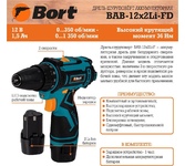 BORT BAB-12X2LI-FD (2X1,5 AH) Дрель-шуруповерт аккумуляторная