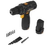 Тип аккумуляторный. Тип двигателя щеточный. Наличие удара есть. Тип удара осевой. Наличие реверса да. Наличие подсветки да. Тормоз двигателя нет. Тип патрона быстрозажимной. Крепление патрона 3/8. Блокировка шпинделя да. Размер зажимаемой оснастки 1-10 мм. Max крутящий момент 32 Нм. Жестк. вращ. момент 32 Нм. Мягк.вращ. момент 32 Нм. Число ступеней крутящего момента 19+1. Число скоростей 2. Частота вращения шпинделя 0-400/0-1500 об/мин. Max частота вращения шпинделя 1500 об/мин. Частота ударов 21000 уд/мин. Max диаметр шурупа 6 мм. Мах диаметр сверления (дерево) 25 мм. Max диаметр сверления (металл) 10 мм. Тип аккумулятора Li-Ion. Напряжение аккумулятора 12 В. Емкость аккумулятора 2 А*ч. Устройство аккумулятора обойма. Время заряда 3 ч. Количество аккумуляторов в комплекте 2. Зарядное устройство в комплекте есть. Вес нетто 1,2 кг. Габариты без упаковки 300х230х87 мм.