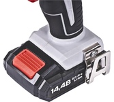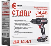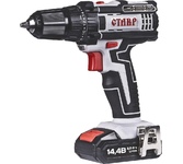 14,4 В, Аккумулятор Li-ion,2 Ач, Максимальный крутящий момент, 45 Нм, 0-350; 0-1300; Число ступеней регулировки момента 18+1; Максимальный диаметр сверления в древесине 25 мм; Максимальный диаметр сверления в стали 16 мм; одномуфтовый металлический патрон; вентильный двигатель; быстрая зарядка; блокиратор шпинделя; в комплекте 2 аккумулятора