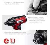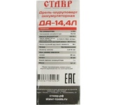 Тип аккумулятора Li-ion (литий-ионный) Напряжение аккумулятора, В14,4. Емкость аккумулятора, Ач 2,0. Число оборотов на холостом ходу, об/мин 0-400/0-1450. Максимальный крутящий момент, Нм 32/17. Число ступеней крутящего момента 18+1. Патрон быстрозажимной. Максимальный диаметр сверления дерева, мм 26. Максимальный диаметр сверления алюминия, мм 10. Время зарядки аккумулятора, ч 1. Габаритные размеры упаковки,см 21х8,5х20. Комплект поставки: Зарядное устройство, Двухсторонняя бита установлена на корпусе (2 шт.). Диаметр патрона, мм 0,8-10. Гарантийный срок 3 года. Масса, кг 1,2.