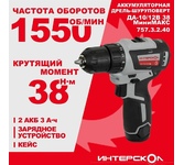 INTERSKOL Аккумуляторная бесщеточная дрель-шуруповерт ИНТЕРСКОЛ ДА-10/12В 38 (кейс, 2 аккум. 3Ач, ЗУ