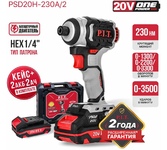 P.I.T. Винтоверт IMPACT аккум. бесщёточный PSD20H-230A/2 (20В, 230Нм, 3ск, HEX 1/4", 2х2Ач,ЗУ,кейс)