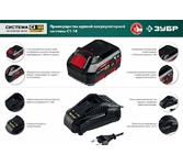 Типзарядное устройство Напряжение 18 ВТип аккумулятора Li-Ion Совместимый бренд ЗУБР Конструкция аккумулятора слайдер