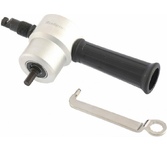 Насадка на дрель для резки листового металла Сибртех 78301 позволяет разрезать сталь толщиной до 1,8 мм, нержавеющую сталь толщиной до 1,2 мм, медь и алюминий до 2 мм. Ширина реза составляет 6 мм, он может быть не только прямым, но и фигурным. Приспособление устанавливается на электрические дрели со скоростью вращения 3000 об/мин. Насадка для резки металла будет полезна при проведении кровельных работ, а также пригодится в слесарной мастерской, на даче или в гараже.