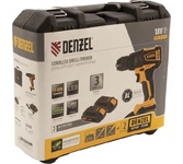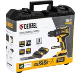 Мощная дрель-шуруповерт Denzel с крутящим моментом 65 Нм оснащена надежным ультрасовременным бесщеточным двигателем с увеличенным ресурсом. Особенности: бесщеточный двигатель; патрон с увеличенным до 13 мм диаметром устанавливаемой оснастки; LED-подсветка рабочей зоны; LED-индикатор заряда батареи; защита от глубокого разряда и нежелательного перезаряда; реверс; регулировка частоты вращения; электрический тормоз Преимущества: усиленная надежная конструкция редуктора ; аккумуляторные батареи с интеллектуальной системой распознавания типа нагрузки; совместимые с другими продуктами в модельном ряду Комплектация: Дрель-шуруповерт аккумуляторная - 1 шт.; Батарея аккумуляторная - 2 шт.; Устройство зарядное - 1 шт.; Сверла спиральные по металлу - 6 шт.; Биты 25 мм (тип SL, PH, PZ) - 6 шт.; Адаптер магнитный для бит - 1 шт.; Инструкция по эксплуатации и гарантийный талон - 1 шт.