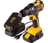 Тип инструмента: Дрель-шуруповерт. Крутящий момент: 60. Крутящий момент (мягкое заворачивание): 30. Количество скоростей: двухскоростной. Число ступеней крутящего момента: 20+1. Тип основного патрона: быстрозажимной. Максимальный диаметр сверления (сталь): 13. Максимальный диаметр сверления (дерево): 38. Тип электропитания: от аккумулятора. Емкость аккумулятора: 2. Напряжение аккумулятора: 20. Тип аккумулятора: Li-Ion. Время зарядки, около: 60. Запасной аккумулятор: в комплекте. Жесткий кейс в комплекте: есть. Вес товара: 1.4. Комплект поставки: Дрель-шуруповерт, зарядное устройство, аккумуляторная батарея 2,0 А*ч (2 шт.), зажим для ремня, бита, пластиковый кейс. .. Аккумулятор: в комплекте. Зарядное устройство: в комплекте. Количество аккумуляторов в комплекте: 2 аккумулятора. Габариты упаковки (ед) ДхШхВ: 0.32x0.1x0.27. Вес упаковки (ед): 3.1. Страна производства: Китай. Класс инструмента: бытовой. Гарантия: 36 мес.. Число оборотов (для 2 скорости): 2300 об/мин. Диаметр основного патрона: 13 мм. Число оборо