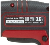 Напряжение аккумулятора, В (Max) 3.6, Емкость аккумулятора, А*ч 1.5, Макс. крутящий момент, Нм 3.5, Количество регулировок крутящего момента 8+1, Количество скоростей 1, 1 скорость, об/мин 0-210, Наличие реверса, Регулировка частоты вращения, Блокировка шпинделя, Наличие подсветки, Индикатор заряда батареи, Система защиты аккумулятора BSC, Прорезиненная рукоятка, Количество аккумуляторов в комплекте, шт 1