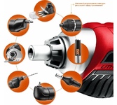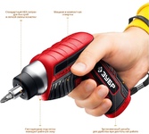 Преимущества: - Быстрозажимной патрон- для простой смены оснастки; - Лёгкий вес и прорезиненная ручка обеспечивает комфортную работу даже при длительном использовании шуруповерта; - Возможность регулировки крутящего момента позволяет использовать шуруповерт для работы практически с любым материалом (дерево, металл, пластмасса); - Быстрозажимной патрон позволяет легко и быстро менять биты или сверла; - Металлический редуктор; - 22 ступени крутящего момента- для работы с различными материалами.