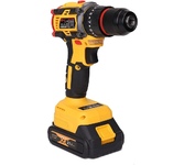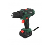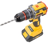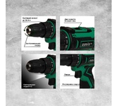 Тип аккумулятора -Li-Ion, в комплекте2 аккумулятора. Количество скоростей работы-2, тип двигателя инструмента-бесщеточный, максимальное число оборотов - 1450 об/мин, есть наличие удара, тип патрона – быстрозажимной, максимальный крутящий момент (Н/м)-40, максимальный диаметр сверления стали-10 мм, емкость аккумулятора (А/ч)-2 Ач, напряжение аккумулятора (В)-21 В. Индикация уровня заряда батареи, противоскользящие вставки, электронная защита от перегрузок.