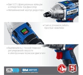 Профессиональный гайковерт KLPRO KLSS18B-50 18Volt/5. 0Ah (2 аккумулятора Li-ion) Максимальная мощность крутящего момента 250 Нм Максимальный диаметр гайки М16 Частота импульсов 0-3300 импульсов/мин Бесщеточный двигатель снижает трение и продлевает время работы и срок службы инструмента Аккумуляторы большой емкости обеспечивают очень длительное время работы при очень компактных размерах Конструкция параболического переключателя, обеспечивающая более высокий уровень контроля скорости ….
