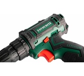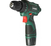 Аккумуляторная дрель с функцией шуруповёрта предназначена для сверления отверстий в цветных и чёрных металлах, пластмассах, дереве и других строительных материалах (при установке сверла). Кроме того инструмент можно использовать для завинчивания и отвинчивания винтов, шурупов, саморезов при монтажных и строительных работах, как в производственных, так и бытовых условиях (при установке соответствующих бит). Тип аккумулятора-Li-Ion, в комплекте 2 аккумулятора, количество скоростей работы -2. Материал корпуса-пластик. Тип двигателя инструмента-щеточный. Тип патрона-быстрозажимной. Максимальный крутящий момент (Н/м)-23.