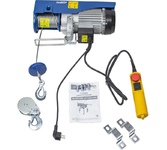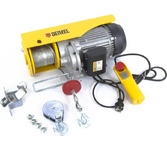 Тип канатный. Грузоподъемность 250 кг. Мощность 1 кВт. Напряжение 220 В. Высота подъема 12 м. Диаметр троса 4.2 мм. Длина троса 12 м. Высота подъема с блоком полиспаст 6 м. Грузоподъемность с блоком полиспаст 500 кг.