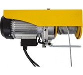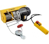 Тип канатный. Грузоподъемность 500 кг. Мощность 1.6 кВт. Напряжение 220 В. Высота подъема 12 м. Диаметр троса 5.6 мм. Длина троса 12 м. Высота подъема с блоком полиспаст 6 м. Грузоподъемность с блоком полиспаст 1000 кг.