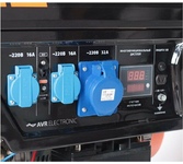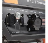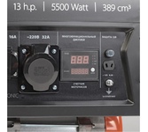 Объем двигателя, см3 389, Макс. мощность, л.с. 13, Тип топлива АИ-92, Объём бака, л 25, Тактность двигателя 4-х тактный, Номинальное напряжение, В 220, Мощность ном/макс, кВт 5.0/5.5, Расход топлива, г/кВт 440, Уровень шума, dB 78, Стартер ручной, Вольтметр электронный мультидисплей, Розетки 2 евро 16А, 1 евро 32А, Комплект для транспортировки опция, Выход на 12B .