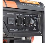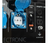 Объем двигателя, см3 210, Макс. мощность, л.с. 7, Тип топлива АИ-92, Объём бака, л 15, Тактность двигателя 4-х тактный, Номинальное напряжение, В 220, Мощность ном/макс, кВт 2.8/3.0, Расход топлива, г/кВт 580, Уровень шума, dB 67, Стартер ручной/электро +АКБ, Вольтметр электронный мультидисплей, Розетки 2 евро 16A, Выход на 12B.