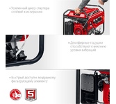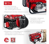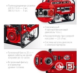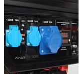 Объем двигателя, см3 420, Макс. мощность, л.с. 15, Тип топлива АИ-92, Объём бака, л 25, Тактность двигателя 4-х тактный, Номинальное напряжение, В 220, Мощность ном/макс, кВт 6.0/6.5, Расход топлива, г/кВт 490, Уровень шума, dB 78, Стартер ручной/электро/автозапуск +АКБ, Вольтметр электронный мультидисплей, Розетки 2 евро 16А, 1 евро 32А, Комплект для транспортировки опция, Выход на 12B