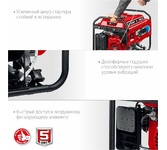 Генератор предназначен для автономного электроснабжения в условиях отсутствия бытовой электросети. Особенности Мощный и экономичный двигатель Denzel Металлический распределительный вал Увеличенный диаметр провода обмотки статора Указатель уровня топлива Цифровой мультиметр Преимущества Медная обмотка альтернатора Защита от перегрузки и короткого замыкания Автоматический регулятор напряжения AVR Защита от низкого уровня масла Электростартер Возможность подключения блока автоматического запуска Усиленная рама диаметром 32 мм Возможность установки рукояток и колес Комплектность Генератор - 1 шт. Ключ свечной - 1 шт. Ключ зажигания - 2 шт. Вилка 230В/16А - 2 шт. Вилка 230В/32А - 1 шт. Руководство по эксплуатации - 1 шт. Гарантийный талон - 1 шт.