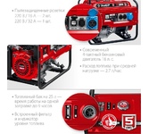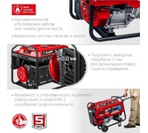 Вид топлива: бензин Аи92. Выход 12V: нет. Датчик масла: есть. Индикатор уровня топлива: есть. Колеса и ручки: нет. Контейнерный: нет. Контроль напряжения: AVR. Счетчик моточасов: нет. Тип двигателя: 4-х тактный. Тип электростанции: мобильные. Уровень шума, дБ: 74. Эл. выходы 380/220/12, шт: -/2/-. Минимальный заказ: 1. Max мощность, кВт: 8. Мощность номинальная при 220 В, кВт: 7.5. Напряжение, В: 220. Стартер: ручной. Альтернатор: синхронный. Автозапуск (АВР): нет. Емкость топливного бака, л: 25. Вес, кг: 83.
