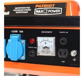Макс. мощность 230В, кВт 1,2 Номинальная мощность 230В, кВт 1 Номинальный ток при 230В, А 4,3 Номинальный ток при 400В, А нет Макс. ток 12В, А 4 Розетки 12/230/400В, А 2х230В,16А / 1х12В Выход на 12B есть, розетка Номинальное вырабатываемое напряжение, В 230 / 12 Частота, Гц 50 Исполнение корпуса открытый Частота вращения, об/мин 3000 Мощность, л.с. 3 Объем двигателя, см.куб 94 Объем топливного бака, л 6 Тип двигателя 4-х тактный бензиновый Объем масляного картера, л 0,37 Модель двигателя PATRIOT 94cc Тип топлива бензин АИ-92 Охлаждение воздушное Стартер ручной Свеча зажигания E7TC Количество цилиндров 1 Воздушный фильтр поролоновый картридж Масляный фильтр нет Расход топлива (при 100% нагрузке), л/час 1,2 Регулятор напряжения CVR Индикатор уровня топлива есть Обмотка альтернатора алюминий Тип альтернатора синхронный Класс защиты IP21 Уровень шума LpA 7м при 75% нагрузки, дБА ≤75 Габариты и вес Вес товара, кг 23,1