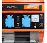Объем двигателя, см3 210, Макс. мощность, л.с. 7, Тип топлива АИ-92, Объём бака, л 15, Тактность двигателя 4-х тактный, Номинальное напряжение, В 220, Мощность ном/макс, кВт 2.5/2.8, Расход топлива, г/кВт 500, Уровень шума, dB 67, Стартер ручной, Вольтметр стрелочный, Розетки 2 евро 16А, Выход на 12B.
