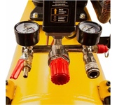 Безмасляный малошумный компрессор Denzel DLP-4500/150 58146 мощностью 4,5 кВт (3 x 1,5 кВт) и производительностью 750 л/мин, с ресивером объемом 150 л, оснащен двигателем со скоростью вращения 2850 об/мин. Предназначен для обеспечения пневмоинструмента сжатым воздухом. Для работы компрессора не требуется масло, поэтому он подходит для проведения покрасочных работ и продувки электронных компонентов. Прямой привод обеспечивает максимально эффективную работу и высокую производительность. Благодаря низкому уровню шума эксплуатация компрессора не вызывает ощущение дискомфорта. Преимущества Автономность — специальное реле останавливает компрессор по достижении максимального рабочего давления и запускает двигатель при падении давления до минимального уровня. Удобное управление — специальный блок, оснащенный вольтметром, позволяет включать моторы по отдельности, поочередно или одновременно в зависимости от поставленных задач. Безопасность — в случае превышения максимального давления в ресивере срабатывает предохранит