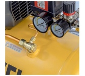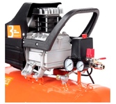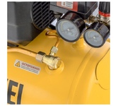 Компрессор пневматический торговой марки DENZEL предназначен для обеспечения сжатым атмосферным воздухом оборудования, аппаратуры и инструмента, применяемого в бытовых целях. Использование компрессора позволяет значительно сэкономить электроэнергию, а также повысить эффективность работы. Компрессор способен производить 230 л/мин сжатого до 8 атм воздуха, который нагнетается в ресивер общим объемом 24 литров. Особенности Напряжение питания 230 В Двигатель асинхронный однофазный Манометр для контроля давления сжатого воздуха Реле давления, осуществляющим запуск/остановку в зависимости от настроек Защитный клапан Функция автозапуска при понижении давления в ресивере ниже 6 атм Простота и удобство перемещения Преимущества Эффективная система смазки Защита от перегрева Защита от перегрузки Предохранительный клапан высокого давления Коннекторы для быстрого подключения пневмоинструмента Rapid (Евро) Резиновые опоры для снижения вибрации Металлические воздушные фильтры с бумажным картриджем Комплектность Компрессор в