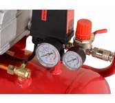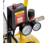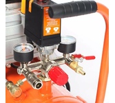 Компрессор пневматический торговой марки DENZEL предназначен для обеспечения сжатым атмосферным воздухом оборудования, аппаратуры и инструмента, применяемого в бытовых целях. Использование компрессора позволяет значительно сэкономить электроэнергию, а также повысить эффективность работы. Компрессор способен производить 230 л/мин сжатого до 8 атм воздуха, который нагнетается в ресивер общим объемом 24 литров. Особенности Напряжение питания 230 В Двигатель асинхронный однофазный Манометр для контроля давления сжатого воздуха Реле давления, осуществляющим запуск/остановку в зависимости от настроек Защитный клапан Функция автозапуска при понижении давления в ресивере ниже 6 атм Простота и удобство перемещения Преимущества Эффективная система смазки Защита от перегрева Защита от перегрузки Предохранительный клапан высокого давления Коннекторы для быстрого подключения пневмоинструмента Rapid (Евро) Резиновые опоры для снижения вибрации Металлические воздушные фильтры с бумажным картриджем Комплектность Компрессор в
