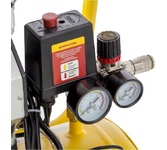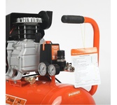 Компрессор пневматический безмасляный малошумный торговой марки DENZEL предназначен для обеспечения сжатым атмосферным воздухом оборудования, аппаратуры и инструмента, применяемого в бытовых целях. Использование компрессора позволяет значительно сэкономить электроэнергию, а также повысить эффективность работы. Компрессор способен производить 165 л/мин сжатого до 8 атм воздуха, который нагнетается в ресивер общим объемом 24 литра. Особенности Напряжение питания 230 В Двигатель асинхронный однофазный Манометр для контроля давления сжатого воздуха Реле давления, осуществляющим запуск/остановку в зависимости от настроек Защитный клапан Функциия автозапуска при понижении давления в ресивере ниже 6 атм Простота и удобство перемещения Преимущества Работа без масла Защита от перегрева Предохранительный клапан высокого давления Коннекторы для быстрого подключения пневмоинструмента Rapid (Евро) Резиновые опоры для снижения вибрации Низкий уровень шума Комплектность Компрессор воздушный – 1 шт. Колесо с крепежом – 2 шт.