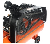 Профессиональный масляный компрессор с ременным приводом используется для работы с пневмоинструментом на небольших производствах, в ремонтных и сервисных мастерских. Производительности 420 л/мин (25,2 м3/ч) достаточно для пескоструйных, монтажных и строительных работ. Быстросъемный штуцер (?") и кран с вентилем для подключения пневмоинструмента. Объем ресивера — 100 л. Отличается высоким ресурсом и малыми потерями выходной производительности. Рассчитан на длительное использование: · Цилиндр из ковкого чугуна и устойчив к износу · Увеличенные ребра охлаждения · Мощные моторы с медными обмотками увеличенной термостойкости · Блоки клапанов из высоколегированных сплавов устойчивы к перепадам температур и деформации · Картер помпы из ковкого чугуна с увеличенной толщиной стенок устойчив к вибрации · Ресиверы с увеличенной толщиной стенок для компенсации коррозии испытаны 1,5-кратным давлением. · Складчатый фильтр HEPA большой площади для