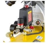 Компрессор пневматический торговой марки DENZEL предназначен для обеспечения сжатым атмосферным воздухом оборудования, аппаратуры и инструмента, применяемого в бытовых целях. Использование компрессора позволяет значительно сэкономить электроэнергию, а также повысить эффективность работы. Компрессор способен производить 400 л/мин сжатого до 10 атм воздуха, который нагнетается в ресивер общим объемом 100 литров. Особенности Напряжение питания 230 В Двигатель асинхронный однофазный Манометр для контроля давления сжатого воздуха Реле давления, осуществляющим запуск/остановку в зависимости от настроек Защитный клапан Функция автозапуска при понижении давления в ресивере ниже 6 атм Простота и удобство перемещения Преимущества Чугунный цилиндр с большими ребрами охлаждения Динамически сбалансированный вал из литого чугуна Эффективная система смазки Защита от перегрева Защита от перегрузки Предохранительный клапан высокого давления Коннекторы для быстрого подключения пневмоинструмента Rapid (Евро) Резиновые опоры для