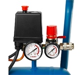 Давление 8.1 Бар. Производительность 200 л/мин. Объем ресивера 24 л. Мощность 1500 Вт. Напряжение 220 В. Привод компрессора прямой. Коннектор быстросъем. Колеса 2. Механический клапан сброса давления. Шумозащитный пластиковый кожух. Регулировка давления на выходе позволяет настраивать давление воздуха зависимости от используемого пневмоинструмента. Самовосстанавливающийся термопредохранитель.