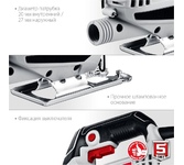 Параметры сети питания, В/Гц: 220 ±10% / 50, Номинальная потребляемая мощность, Вт: 500, Номинальный потребляемый ток, А: 2,3, Наибольшая глубина пропила в стали, мм: 6, Наибольшая глубина пропила в алюминии, мм: 10, Наибольшая глубина пропила в древесине , мм: 55, Ход штока, мм: 18, Наибольший угол наклона при наклонном резе, град.: ±45, Частота двойных ходов штока на холостом ходу, ход/мин: 800...3000, Электронный блок управления, Маятниковый ход, Тип зажима пилки: винтовой, Хвостовик пилки: Т-образный, Класс безопасности машины (по ГОСТ Р МЭК 60745-1): II, Установленный срок службы, лет: 3, Масса, кг: 1,6, Электронный блок управления, Маятниковый ход.