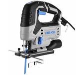 Электролобзик DEKO JS800-D PRO предназначен для распиливания дерева, металла, пластика, резины при отделочных или ремонтных работах. Технические характеристики: Напряжение: 220 В Частота: 50 Гц Мощность: 800 Вт Число ходов: 800-3000 ход/мин Диапазон наклона резки: ±45° Макс. глубина реза дерева: 70 мм Макс. глубина реза металла: 6 мм Маятниковый ход: да Быстрозажимной патрон: да Литая подошва: да