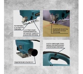 Потребляемая мощность (Вт) 920. Макс. толщина пропила в дереве (мм) 65. Число ходов (об/мин) 3000. Регулятор угла наклона 0-45. Регулятор оборотов Нет. Маятниковый ход Да. Лазерная направляющая Да. Быстрая замена оснастки Да.