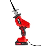 Сабельная аккумуляторная пила MTX RC-80 28812 предназначена для распиливания заготовок из древесины, металла и других материалов. Работает от аккумулятора Li-Ion 20 В емкостью 1,5 А·ч. Предельная частота хода полотна составляет 3000 ход/мин, ее можно регулировать в соответствии с поставленными задачами. Максимальная глубина пропила в древесине составляет 80 мм, в стали — 15 мм. Аккумулятор Li-Ion без эффекта памяти обеспечивает длительную работу инструмента. Пила оптимальна для бытового использования. Преимущества Быстрая замена пильного полотна — благодаря бесключевому креплению установка оснастки не занимает много времени. Защита от случайного пуска — клавиша выключателя блокируется при помощи специальной кнопки. Контроль уровня заряда — индикатор, расположенный на корпусе батареи, поможет быстро определить, когда пора провести подзарядку. Термозащита — при перегреве двигатель останавливается для предотвращения поломки. LED-подсветка рабочей зоны — пилой комфортно работать даже при слабом освещении. Комфорт
