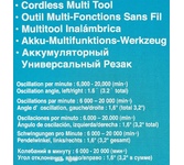Мощность: 390. Регулировка частоты колебаний: есть. Угол колебания влево/вправо: 3.2. Сегментированный пильный диск в комплекте: нет. Пильное полотно в комплекте: нет. Дельташлифпластина в комплекте: нет. Рукоятка с мягкой накладкой: есть. Цвет: синий. Дополнительный цвет: черный. Тип электропитания: от аккумулятора. Количество аккумуляторов в комплекте: без аккумулятора. Зарядное устройство в комплекте: нет. Габариты упаковки (ед) ДхШхВ: 0.3x0.18x0.18. Вес упаковки (ед): 2. Вес товара: 2. Гарантия: 12 мес.. Число колебаний: 6000 - 20000ход/мин. Аккумулятор: Li-Ion, 18 В. Размеры товара (ДхШхВ): 340х80х. Функции: регулировка оборотов