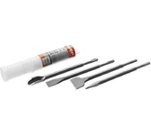 Длина, мм; 250; Закалка; Трехступенчатая индукционная; Комплектация; 4 шт.: пиковое, плоское 20 мм, плоское широкое 40 мм, канальное; Тип упаковки; туба; Форма; Круглая