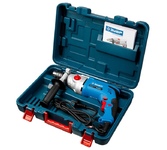 Ударная дрель Зубр ЗДУ-1100-2 ЭРММ2 - мощный и легкий инструмент с двумя режимами работы и двухскоростным редуктором. Модель имеет дополнительную рукоятку-пенал, в которой можно хранить оснастку. Также она помогает лучше удерживать инструмент во время работы. Металлический корпус редуктора продлевает срок службы дрели. Фиксация клавиши "Пуск" делает длительную работу более удобной. Графитовые щетки имеют увеличенный срок службы, ресурс не менее 50 часов. Технические характеристики Зубр ЗДУ-1100-2 ЭРММ2 Мах диаметр сверления (дерево), мм 35 Max диаметр сверления (металл), мм 16 Мощность, Вт 1100 Наличие подсветки нет Наличие реверса да Наличие удара да Вес, кг 3,3 Регулировка оборотов да Число скоростей 2 Тип патрона ключевой Мах диаметр сверления (бетон), мм 16 Частота вращения шпинделя, об/мин 0-1100/2700 Комплектация коробка Частота ударов, уд/мин 0-27000 Автоматически отключающиеся при износе щетки нет Плавный пуск да