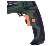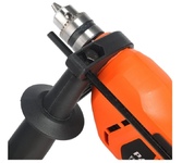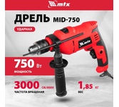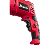 Дрель ударная MTX MID-750 26382 мощностью 750 Вт предназначена для сверления и сверления с ударом отверстий в древесине (до 25 мм), металле (до 10 мм), бетоне (до 13 мм). Ключевой патрон совместим со сверлами диаметром от 1,5 до 13 мм. Частота вращения плавно меняется в зависимости от степени нажатия на кнопку пуска, что облегчает работу с материалами разной плотности.ПреимуществаЭффективное сверление твердых материалов — в патроне с ключевым зажимом сверло не прокручивается. Реверс — направление вращения можно менять для быстрого извлечения оснастки при заклинивании или при использовании левосторонних сверл.Удобная работа — кнопка пуска фиксируется в нужном положении, что предотвращает случайное изменение частоты вращения.Получение отверстий заданной глубины — в комплект поставки входит ограничитель глубины сверления.Надежный захват инструмента двумя руками — кроме основной рукоятки предусмотрена боковая съемная, положение которой можно менять.