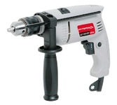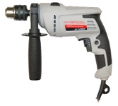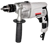 1100 Вт, число оборотов на холостом ходу 0-3000 об/мин, диаметр сверления сталь/дерево/бетон 10/25/13 мм, патрон ключевой 1,5-13 мм, вес - 2.3 кг.