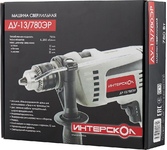 Потребляемая мощность 810 Вт. Частота вращения шпинделя на холостом ходу 0-3300 об/мин. Диаметр зажимаемого сверла 1,5-13 мм. Тип патрона ключевой. Кол-во положений регулировки крутящего момента Максимальный диаметр сверления: - металл 13 мм. - дерево 20 мм. - бетон 10 мм. Класс безопасности (ГОСТ Р МЭК 60745-1-2009/ГОСТ Р МЭК 60745-1-2011) II. Длина шнура питания, не менее 2 м. Электродвигатель Однофазный коллекторный. Номинальное напряжение/Частота 230 В / 50 Гц. Габариты в упаковке (ДхШхВ) 305 х 80х 250 мм. Вес (брутто/нетто) 2,5/2,0 кг.
