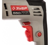 Ударная дрель Зубр МАСТЕР ДУ-550 ЭР работает с такими материалами, как дерево, сталь, кирпич, легкий бетон. Ключевой патрон предусматривает надежное закрепление оснастки. Реверс помогает освободить застрявшее сверло или, например, отвернуть крепко засевший шуруп. Регулировка числа оборотов позволяет подобрать нужную частоту вращения в зависимости от вида работ и материала. Наличие функции удара позволяет сверлить бетон диаметром до 13 мм. Технические характеристики Зубр ДУ-550 ЭР Мах диаметр сверления (дерево), мм 20 Max диаметр сверления (металл), мм 10 Мощность, Вт 550 Наличие подсветки нет Наличие реверса да Наличие удара да Длина кабеля, м 2 Вес, кг 1,6 Регулировка оборотов да Габариты, мм 290x75x245 Число скоростей 1 Тип патрона ключевой Мах диаметр сверления (бетон), мм 10 Частота вращения шпинделя, об/мин 0-3000 Комплектация коробка Частота ударов, уд/мин 0-48000 Автоматически отключающиеся при износе щетки нет