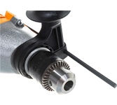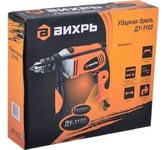 1100 Вт, число оборотов на холостом ходу 0-3000 об/мин, диаметр сверления сталь/дерево/бетон 10/25/13 мм, патрон ключевой 1,5-13 мм, вес - 2.3 кг.