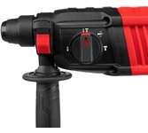 Электрический перфоратор MTX MRH-600-22 26682 мощностью 600 Вт, с патроном под хвостовик SDS-Plus, развивает энергию удара до 2,2 Дж и работает в одном из трех режимов: сверление, сверление с ударом, долбление + регулировка позиции долота. Для выбора нужного режима предусмотрен удобный переключатель. Инструмент используется для получения отверстий в бетоне, металле, древесине, кирпиче, а также для штробления стен. Максимальный диаметр отверстий при сверлении в бетоне составляет 22 мм, в металле — 13 мм, в древесине — 30 мм. Перфоратор может совершать до 4800 ударов в минуту, что обеспечивает высокую производительность и эффективность при работе с различными материалами.ПреимуществаВыбор оптимального режима — скорость вращения шпинделя плавно регулируется в диапазоне 0-1600 об/мин.Получение отверстий нужной глубины — производитель предусмотрел специальный ограничитель.