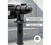 Номинальная мощность, Вт – 650. Частота вращения, об/мин – 0-1100. Сила удара, Дж – 2,8. Система зажима – SDS-plus.